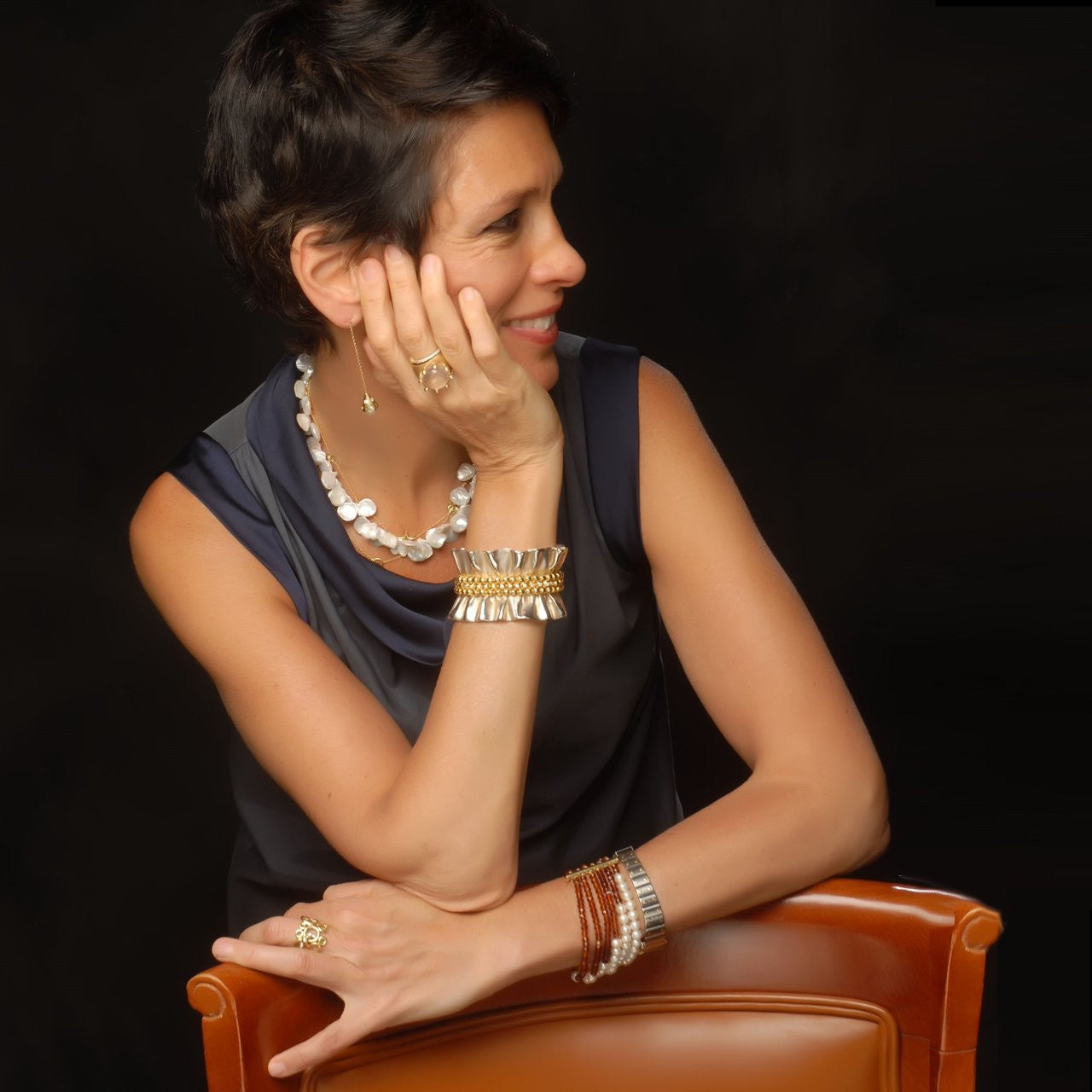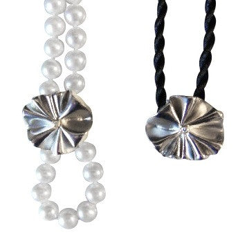 Ruffle Pearl Enhancer: Diamond in 18K Solid Gold Dot Set in Sterling Silver. Fits on Beads & Cords, too