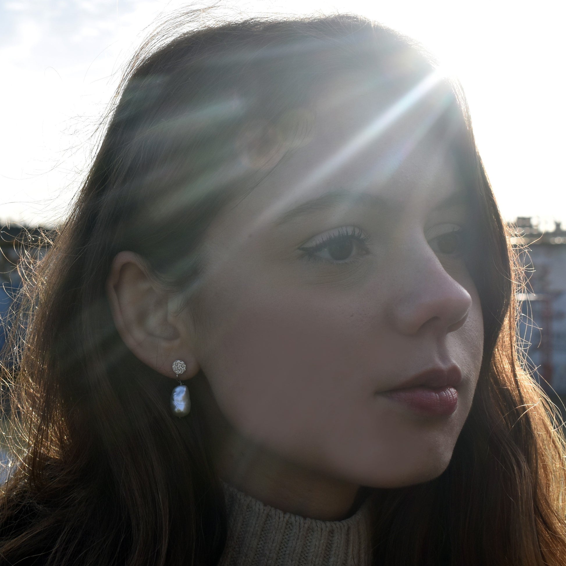 Sterling Silver Stud Earrings With Silver Freshwater Pearls | by nlanlaVictory